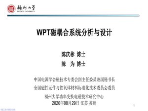 福州大學(xué) 陳慶彬 副教授:無線電能傳輸磁耦合系統(tǒng)的分析與設(shè)計陳慶彬,副教授,福州大學(xué)電氣工程與自動化學(xué)院,研究方向?yàn)殡娏﹄娮庸β首儞Q技術(shù)、高頻磁元件技術(shù)、電磁兼容分析與診斷等。主持...